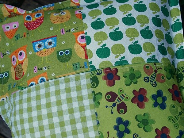 Eigentlich wollte ich nach der Quilt as you go Methode (ihr seht schon: ich habe mich schon sehr ins Patchworken eingelesen 😉 ) vorgehen, d.h. direkt auf ein Batting nähen und gleich quilten (ein Tutorial dafür gibt es z.B. bei Kaffiknopf), das ergibt schöne Effekte, weil jeder Streifen in eine andere Richtung gequiltet wird. Aber irgendwie habe ich das vergessen und voller Eifer begonnen, Stoffreste aneinanderzunähen. Und als ich es bemerkt habe, wollte ich nicht mehr auftrennen.
